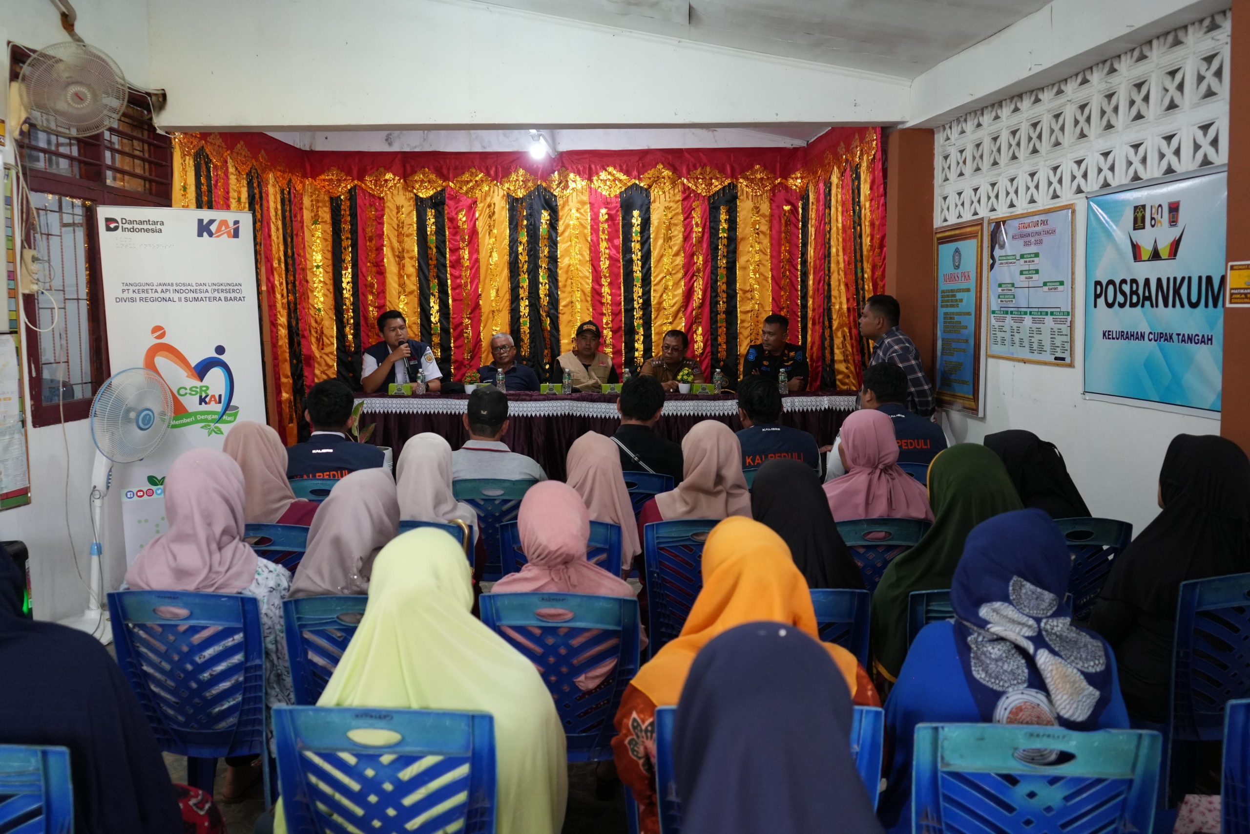 Kegiatan penyerahan bantuan berlangsung di Kantor Lurah Cupak Tangah dan dihadiri oleh Manager Keuangan dan SDM KAI Divre II Sumbar sekaligus Anggota Komite TJSL, Aries Tri Mulyo, Sekretaris Camat Pauh Dafid Ferdian, Lurah Kapalo Koto Saidul Bahri, Niniak Mamak Cupak Tangah Samsul Bahri, Tim TJSL KAI Divre II Sumbar, serta masyarakat setempat.