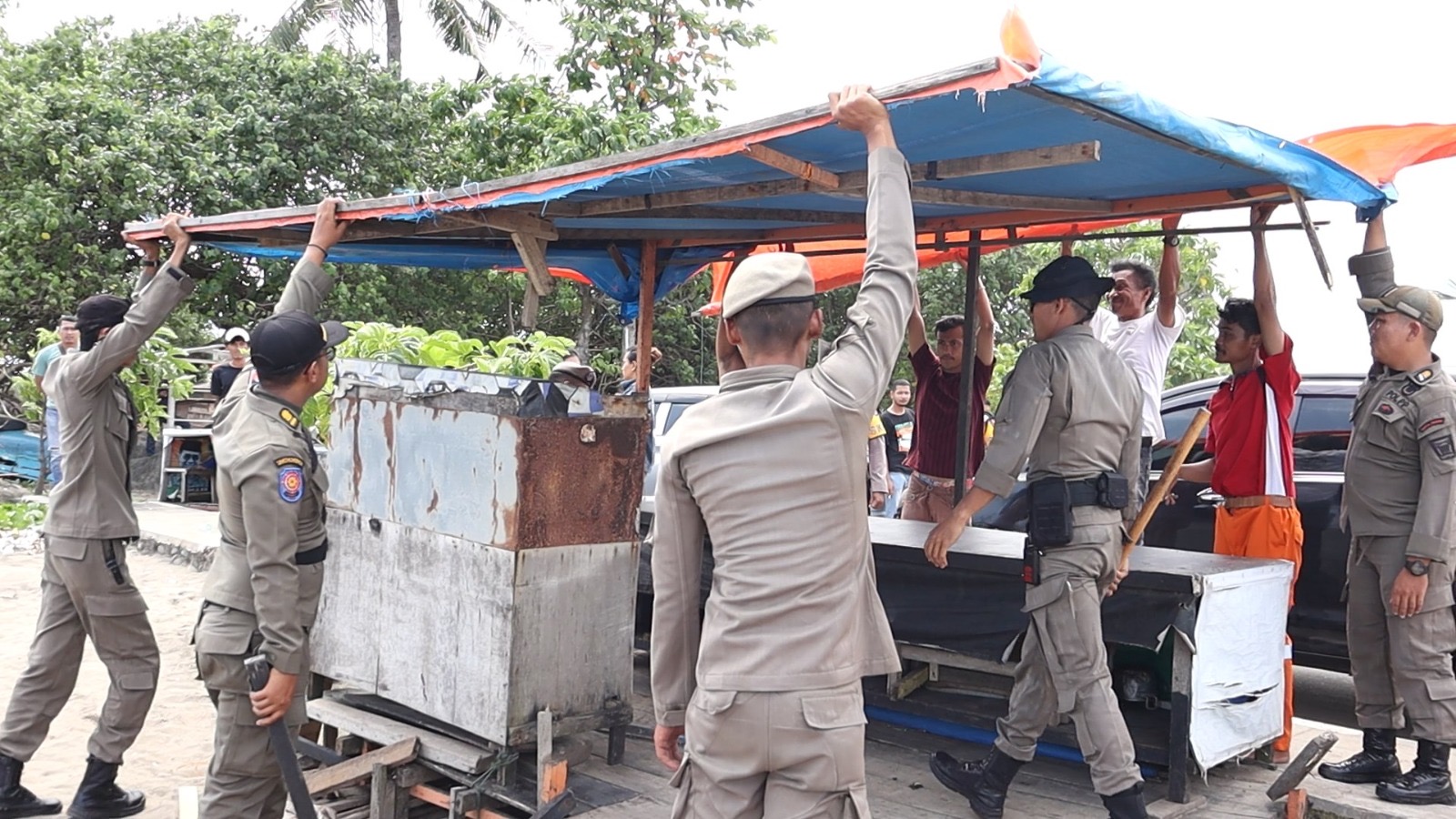 Satpol PP Bongkar Bangunan Liar di Pantai Padang, Pedagang Diimbau Tertib